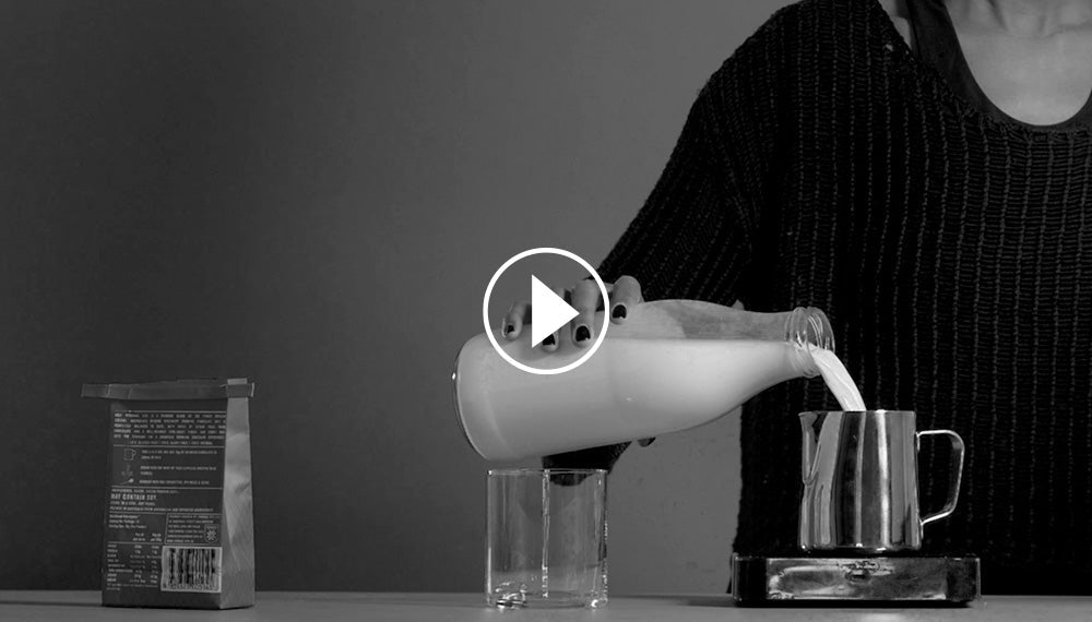 Pre-weigh Original Kali Drinking Chocolate 33% and your chosen milk. The ratio is 10 g of chocolate powder for every 100 mL of milk. A standard cup equates to 20 g chocolate (1 tablespoon) and 200 mL milk.